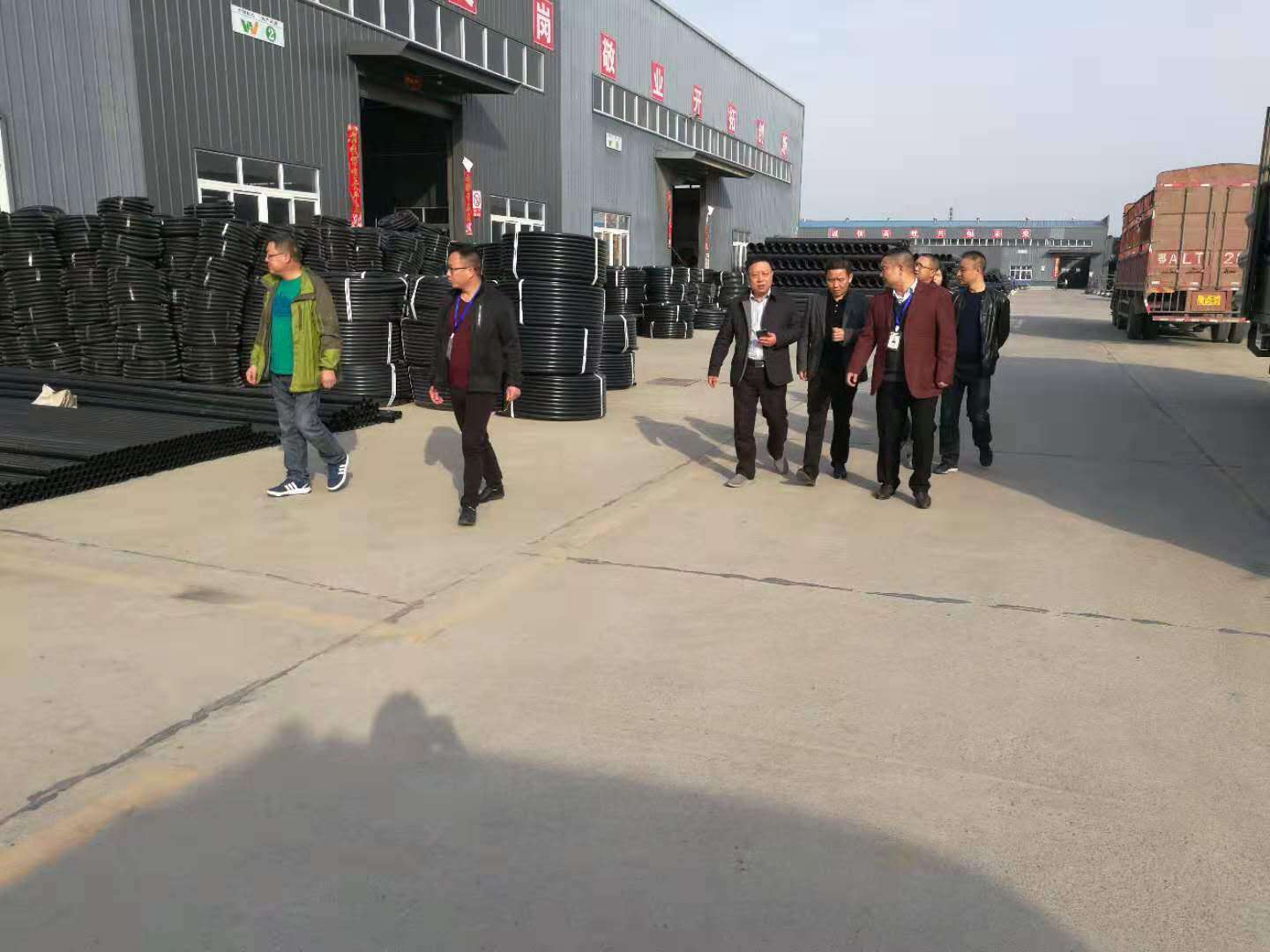 2019年3月15日,潛江水務(wù)局局長劉志勇領(lǐng)導(dǎo)一行到我司進行視察指導(dǎo),公司董事長夏祥義、監(jiān)事會成員吳國安、總助嚴常軍陪同潛江水務(wù)局局長劉志勇領(lǐng)導(dǎo)一行參觀了我司的波紋管生產(chǎn)車間、貨場等。董事長夏祥義對潛江水務(wù)局視察組蒞臨公司視察指導(dǎo)工作表示熱烈歡迎,并向視察組領(lǐng)導(dǎo)詳細介紹了波紋管生產(chǎn)線、生產(chǎn)設(shè)備以及公司波紋管、纏繞管、PE給水管等相關(guān)產(chǎn)品。