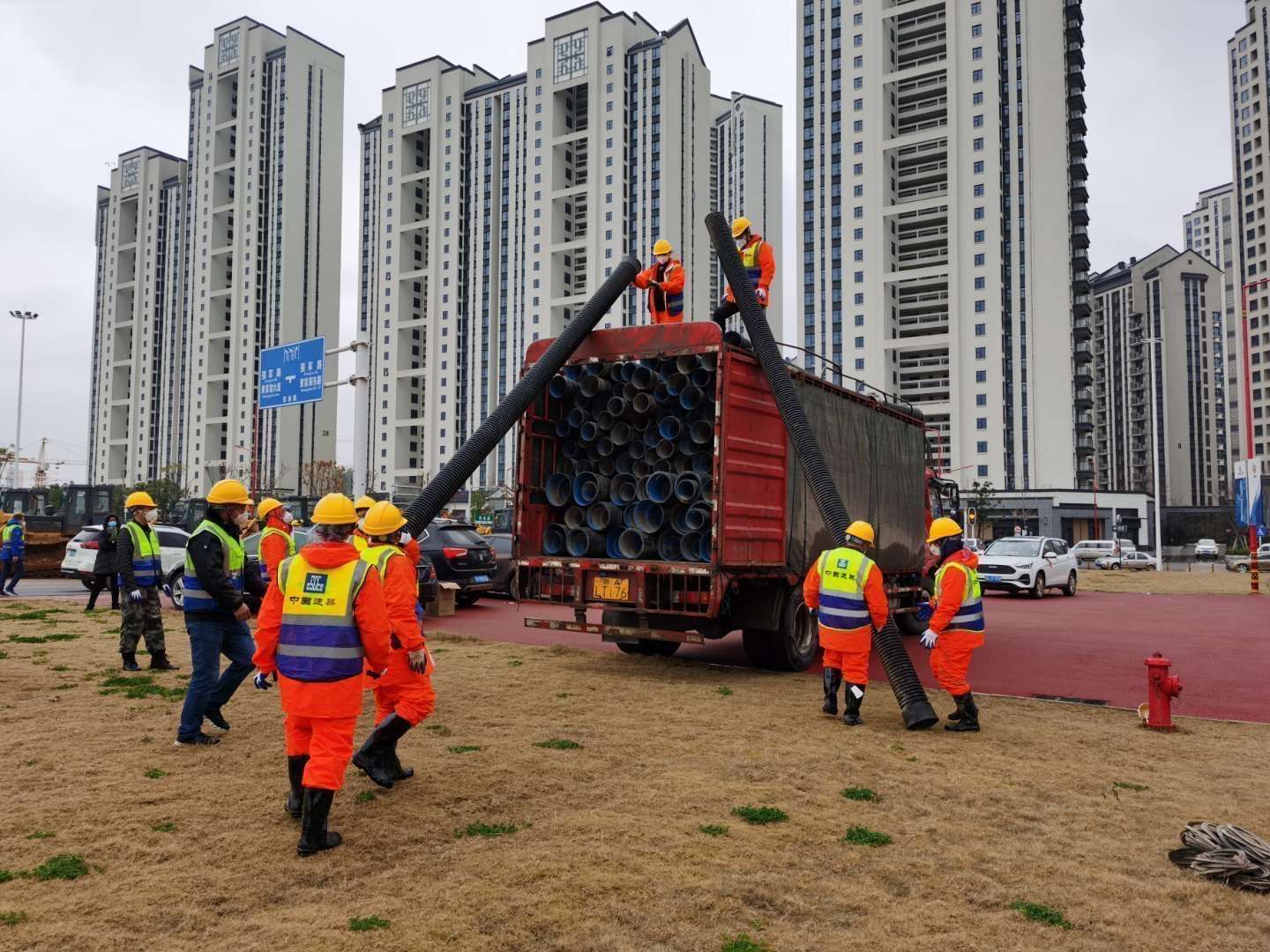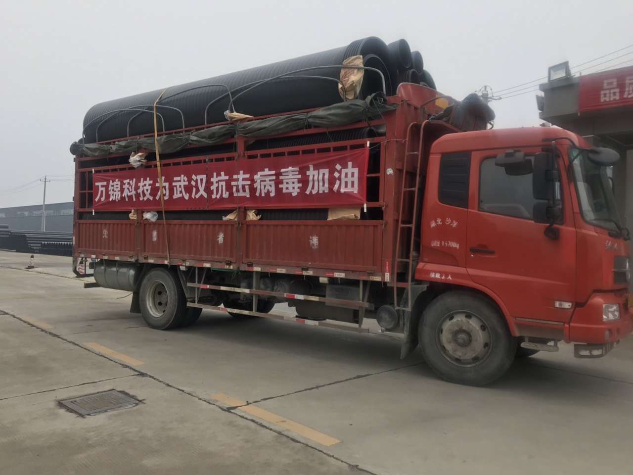 湖北萬錦科技有限公司于2020年1月24日(大年三十)下午接到中建三局、漢陽市政兩個合作單位為武漢市蔡甸區(qū)火神山醫(yī)院建設(shè)的緊急材料支援要求后,萬錦科技及時派人清點庫存并上進行了上報。1月25日(正月初一)、26日(正月初二)連續(xù)兩天組織車輛和裝卸人員為火神山醫(yī)院的建設(shè)提供大口徑管道3124米,總噸位440噸,大小掛車20輛。1月28日上午,應(yīng)中建三局武漢市江夏區(qū)雷神山醫(yī)院建設(shè)項目指揮部的要求,又組織裝運到雷神山醫(yī)院建設(shè)現(xiàn)場各類管道1800米,總噸位186噸,大小掛車6輛。同時,萬錦科技為火神山醫(yī)院無償捐獻5萬元的管道一車。