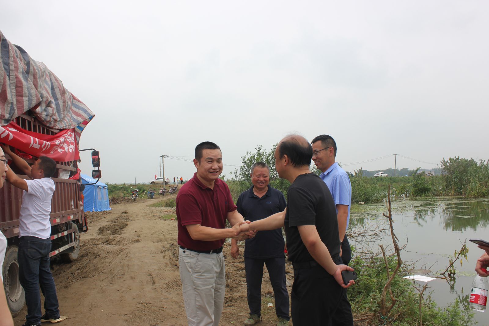 2020年6月入梅以來,湖北省持續(xù)出現(xiàn)了多輪強(qiáng)降雨,我省第三大湖泊長(zhǎng)湖水域持續(xù)超保證水位,一旦滿堤潰壩,將會(huì)嚴(yán)重威脅荊州、沙洋、潛江三縣市850萬人口,18000平方公里國(guó)土面積的安全。為保障廣大人民群眾的生命財(cái)產(chǎn)安全,防汛搶險(xiǎn)人員和武警部隊(duì)已經(jīng)堅(jiān)守長(zhǎng)湖抗洪前線一個(gè)多月。2020年7月14日,湖北萬錦科技有限公司秉承企業(yè)社會(huì)責(zé)任,董事長(zhǎng)夏祥義同志率公司員工親臨抗洪前線,慰問堅(jiān)守一線的抗洪搶險(xiǎn)人員。分別向受災(zāi)嚴(yán)重的沙洋縣后港鎮(zhèn)、毛李鎮(zhèn)捐贈(zèng)10萬元防汛抗災(zāi)慰問金、300件礦泉水和300箱方便面,感謝他們?yōu)楣靶l(wèi)荊楚、保衛(wèi)湖北做出的巨大貢獻(xiàn)。