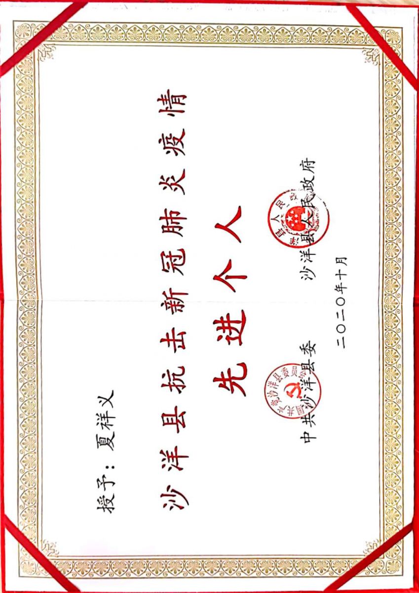 董事長夏祥義榮獲沙洋縣抗擊新冠肺炎疫情先進(jìn)個人