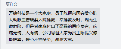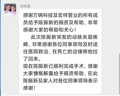 萬錦科技愛心大家庭,積極援助突發(fā)疾病員工