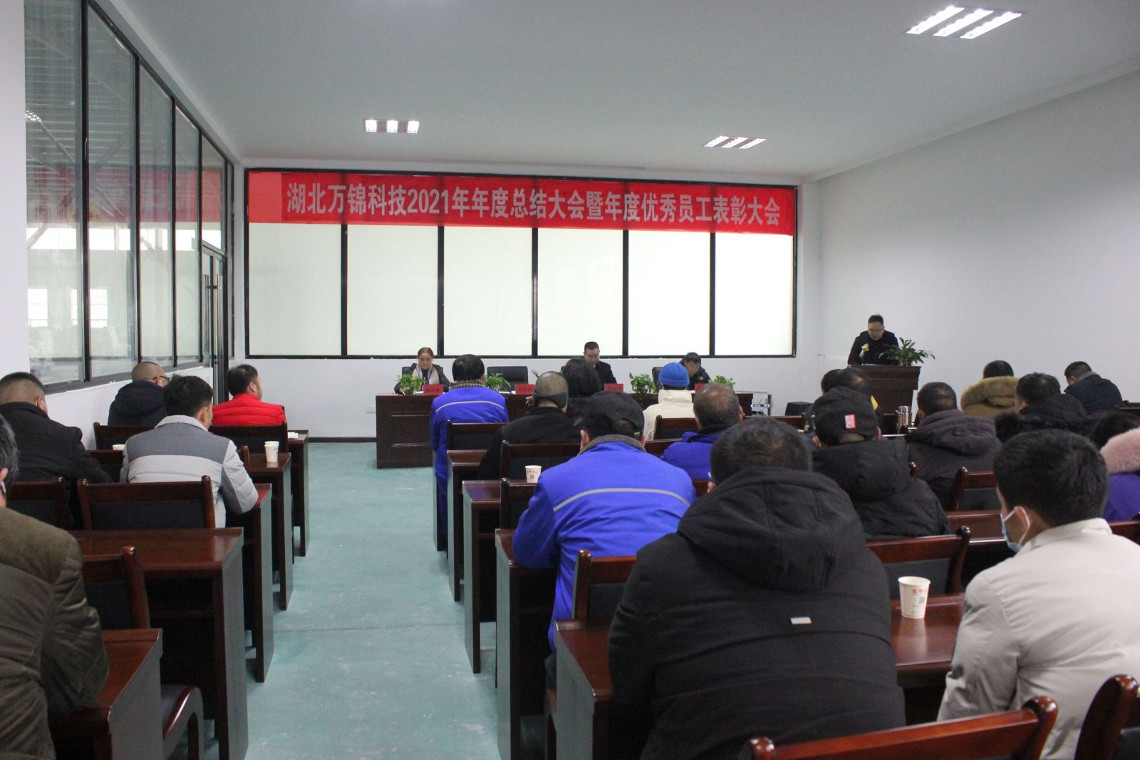 2022年1月19日,湖北萬錦科技2021年年度總結(jié)大會暨年度優(yōu)秀員工表彰大會在萬錦二期會議室盛大召開,公司全體管理層及職工代表共八十余人參會。公司董事長夏祥義,執(zhí)行總經(jīng)理嚴(yán)常軍,分管副總饒林香、張俊成出席會議。
