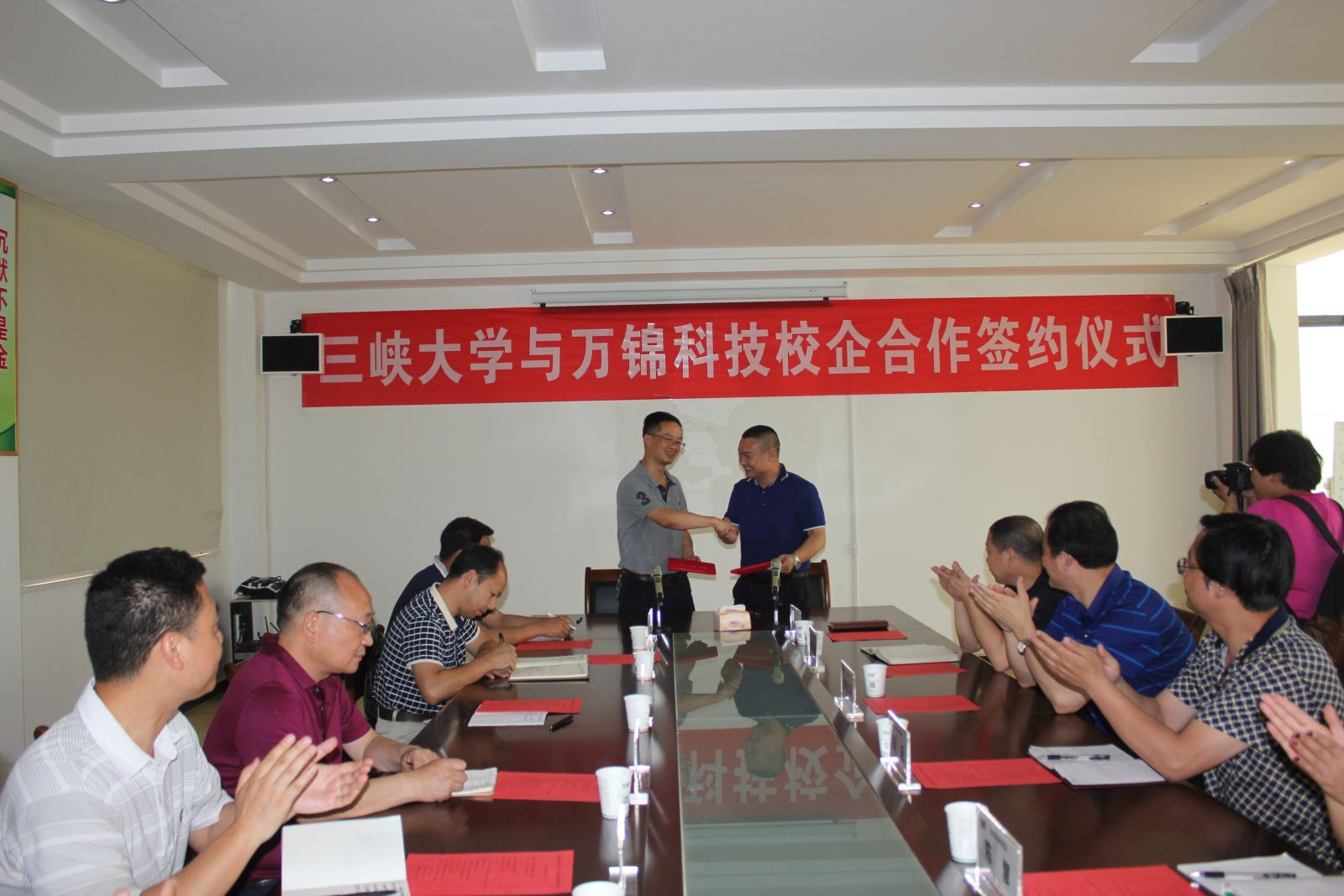 2017年6月2日,陽(yáng)光明媚、雀喜臨門,在這個(gè)美好的日子里,湖北萬錦科技有限公司非常榮幸的邀請(qǐng)到三峽大學(xué)材料與化工學(xué)院的專家教授團(tuán)來到萬錦科技視察指導(dǎo)工作、把脈問診企業(yè),并在湖北萬錦科技三樓會(huì)議室隆重的舉行了校企合作簽約儀式。參加此次簽約儀式的有三峽大學(xué)材料與化工學(xué)院副院長(zhǎng)楊學(xué)林博士、李德江教授、楊進(jìn)教授、陳衛(wèi)豐博士、李永雙博士、沙洋縣副縣長(zhǎng)李旭祥同志、沙洋科技局李旭局長(zhǎng)、張延主席、陳慧科長(zhǎng)、萬錦科技董事長(zhǎng)夏祥義、生產(chǎn)總監(jiān)張艷平、營(yíng)銷總監(jiān)高陽(yáng)新。