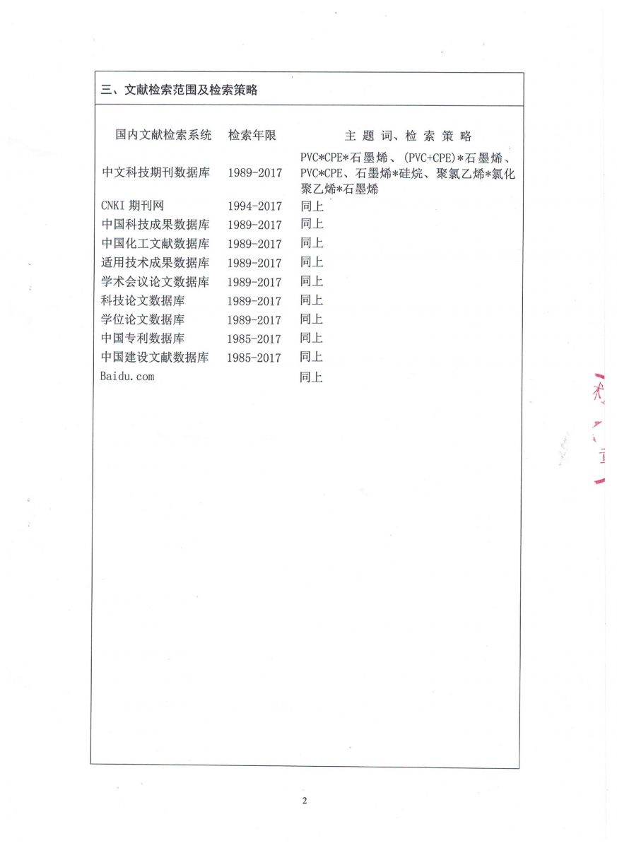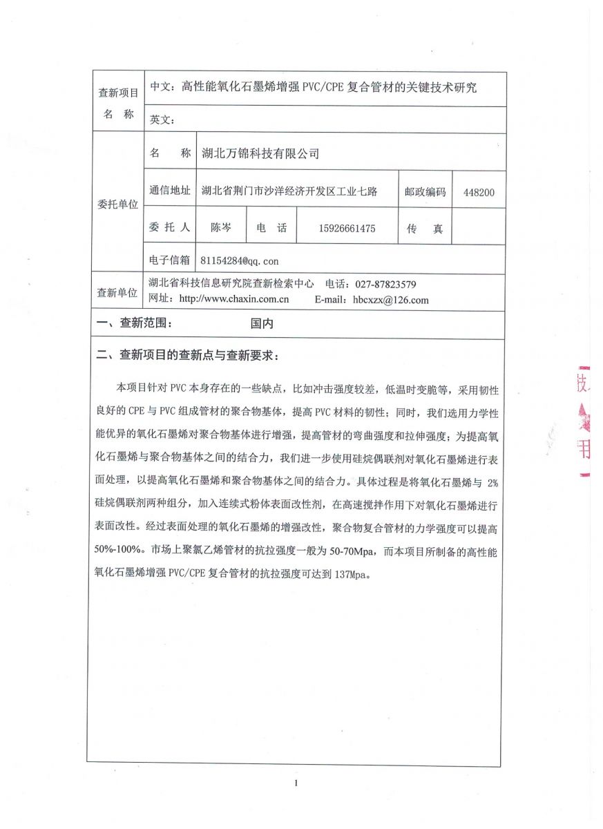 高性能氧化石墨烯增強(qiáng)PVC/CPE復(fù)合管材的關(guān)鍵技術(shù)研究查新報(bào)告!