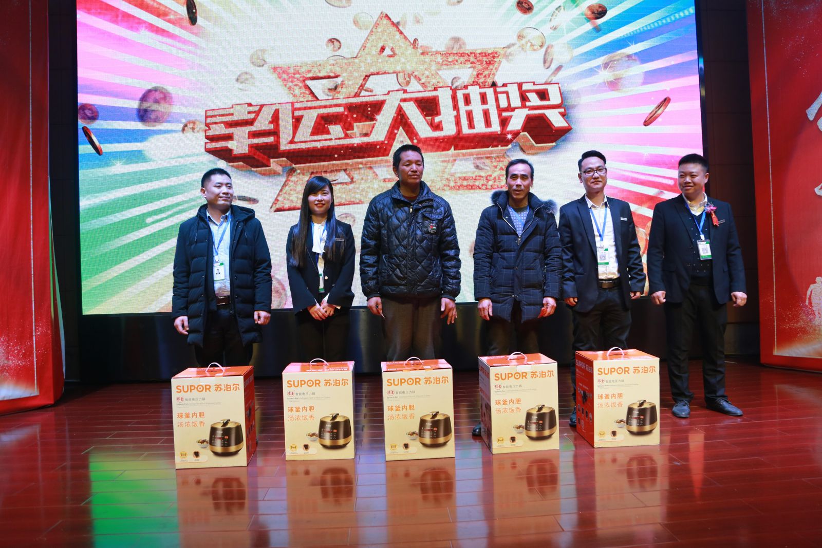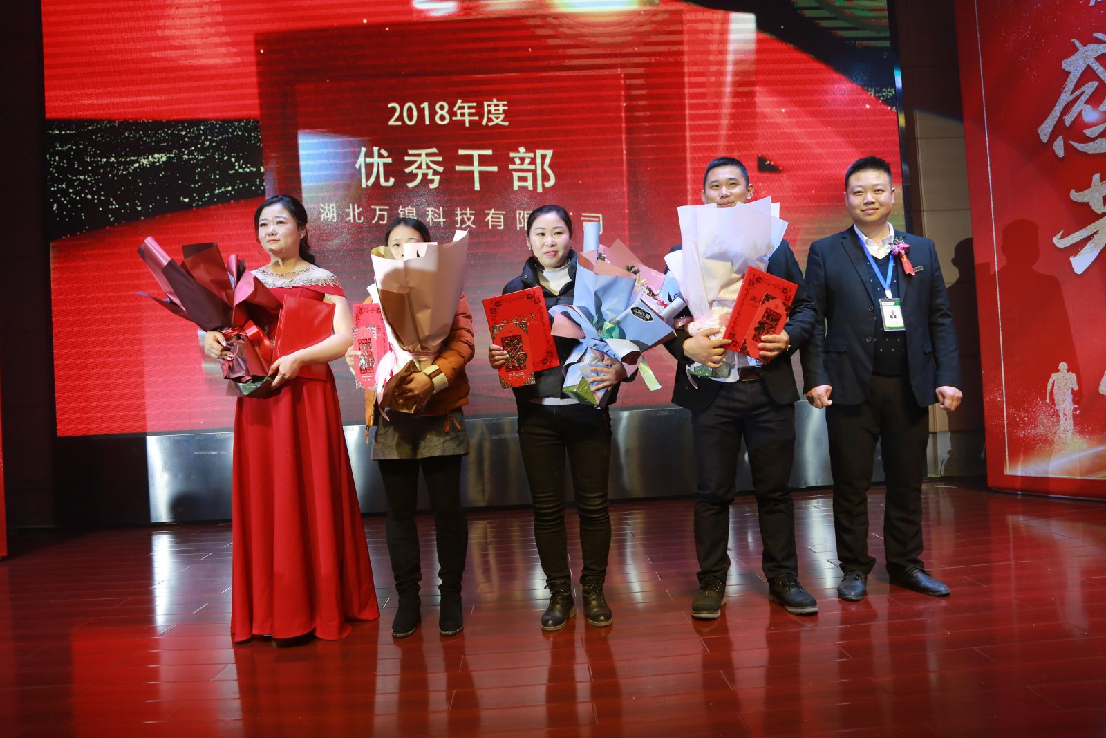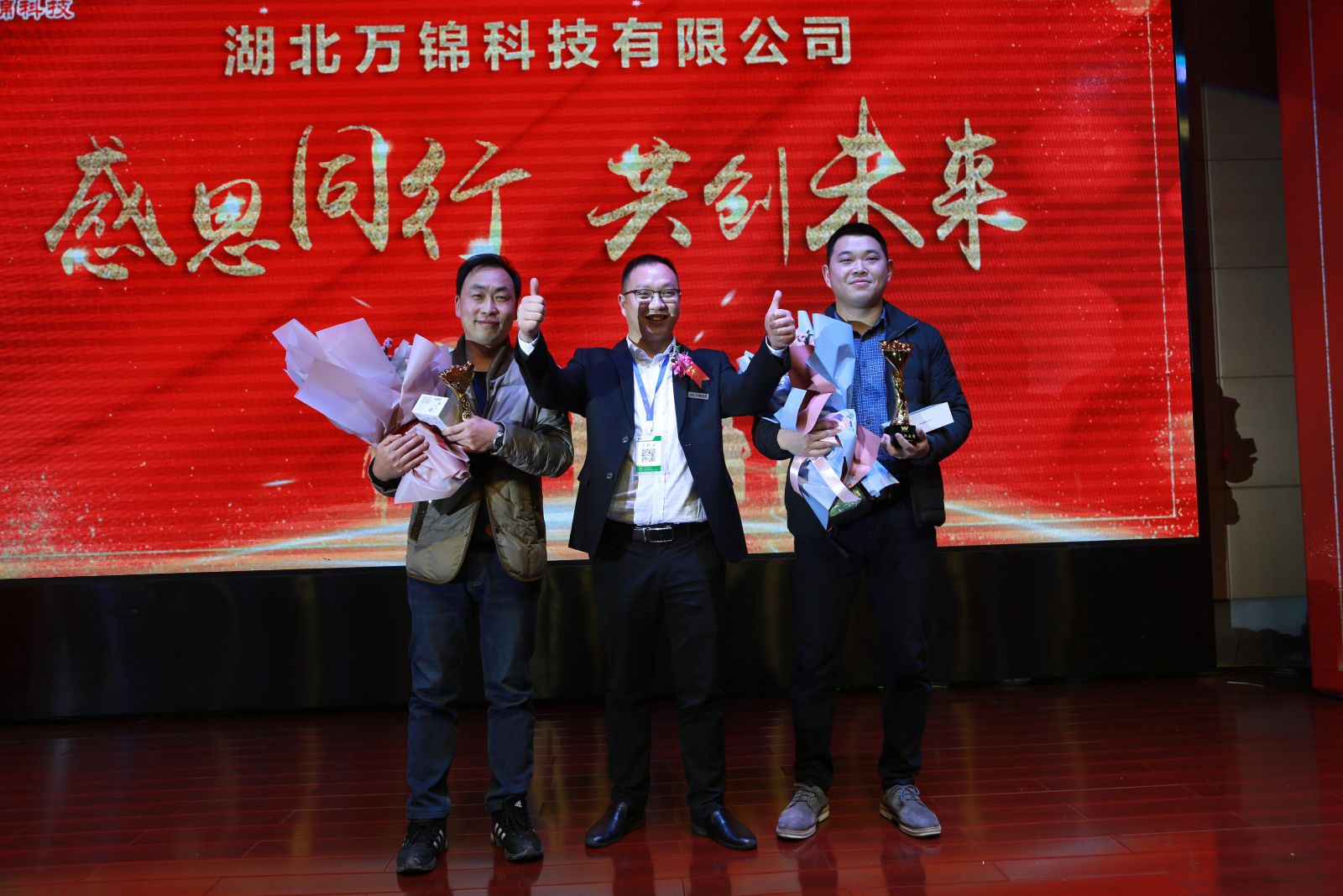 年會(huì)由表彰先進(jìn)、回顧過(guò)去、展望未來(lái)和聯(lián)歡文藝表演三大板塊組成。在第一板塊中,公司表彰并獎(jiǎng)勵(lì)了2018年年度在公司各項(xiàng)工作中有突出表現(xiàn)及貢獻(xiàn)的先進(jìn)個(gè)人和集體。2018年公司還特別設(shè)立“萬(wàn)錦之星”獎(jiǎng),表彰為公司做出重大貢獻(xiàn)的個(gè)人,獲得者將獲得終生養(yǎng)老及醫(yī)療保障。同時(shí),公司也贈(zèng)授了2018年年度優(yōu)秀供應(yīng)商、忠誠(chéng)經(jīng)銷商、卓越經(jīng)銷商獎(jiǎng)杯,感謝各級(jí)經(jīng)銷商、供應(yīng)商與我們?cè)诿媾R市場(chǎng)競(jìng)爭(zhēng)巨大的壓力與挑戰(zhàn)下,相濡以沫、攜手作戰(zhàn)、不畏艱難、勇往直前。